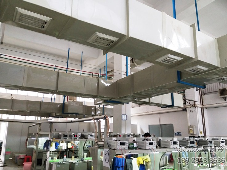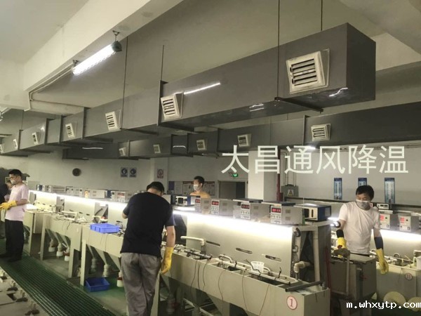 我司设计师在对该车间进行了实地勘察后,结合车间情况,决定采用环保空调进行岗位降温,由于电镀车间腐蚀性强,所以我们设计师在设计风管时采用的是耐腐蚀、坚固耐久、耐热的PP板材料,便于防护。